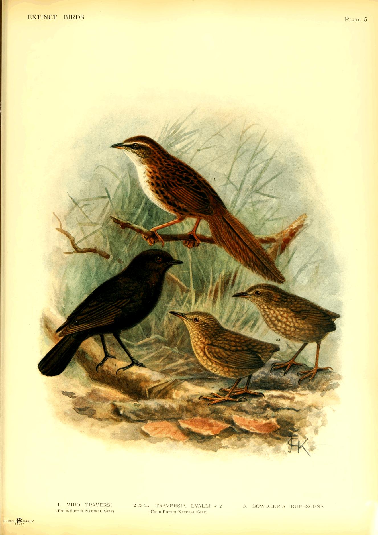 2 & 2a. TRAVERSIA LYALLI ♂ ♀ (Four-Fifths Natural Size) | 3. BOWDLERIA RUFESCENS |