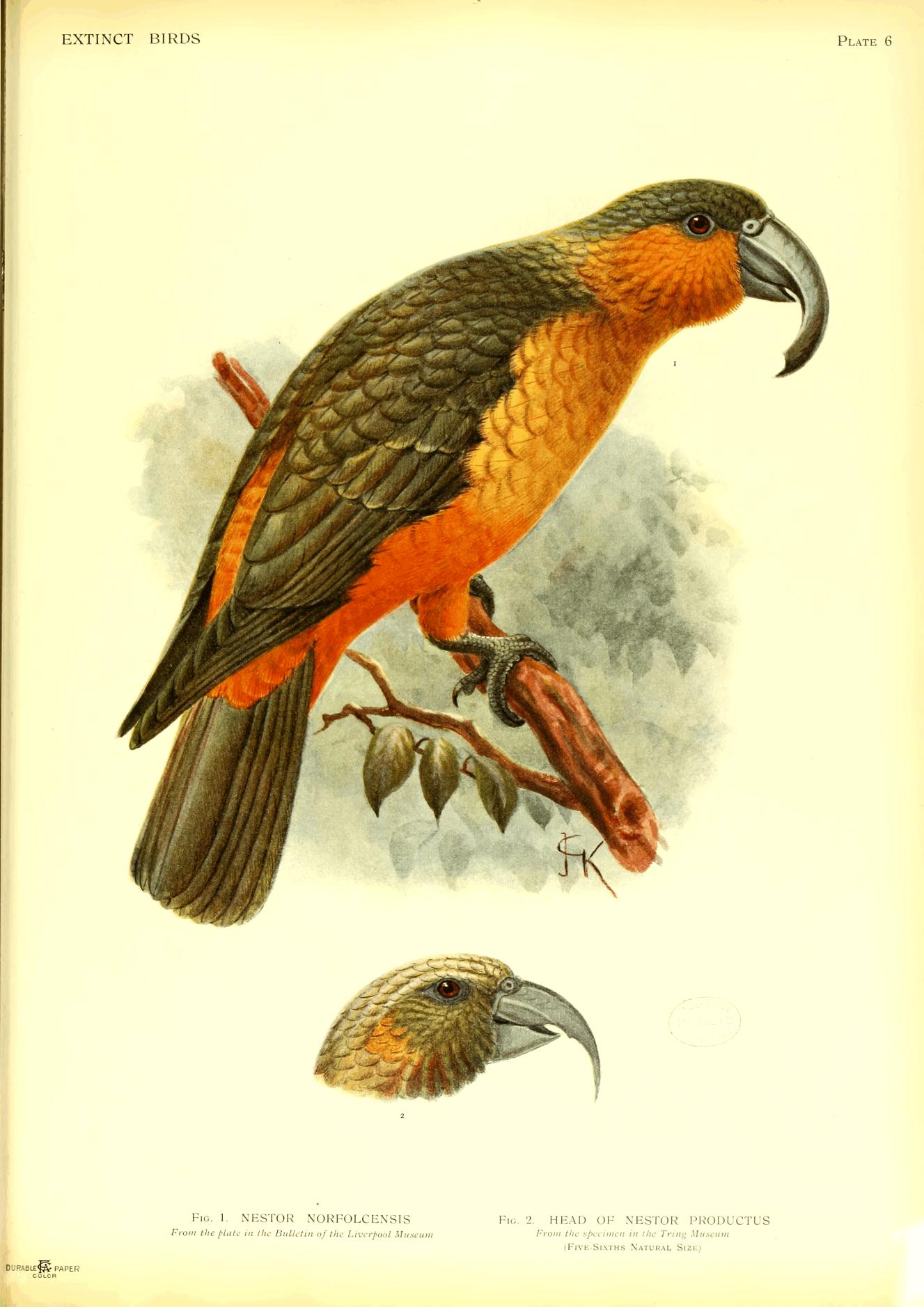Fig. 1. NESTOR NORFOLCENSIS From the plate in the Bulletin of the Liverpool Museum |