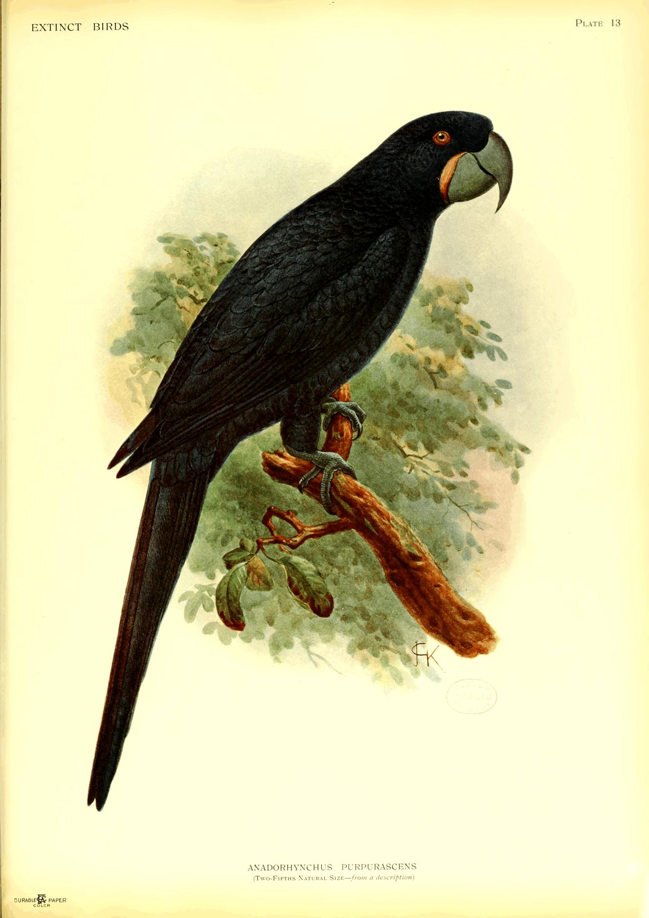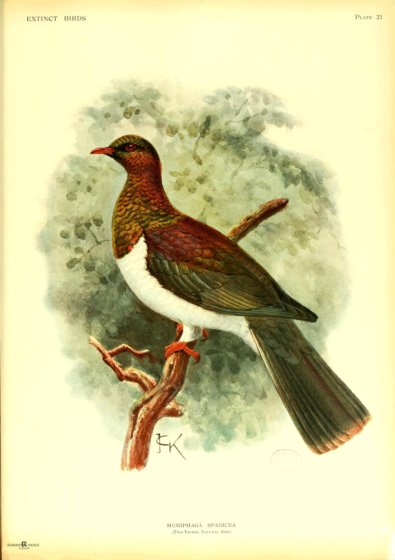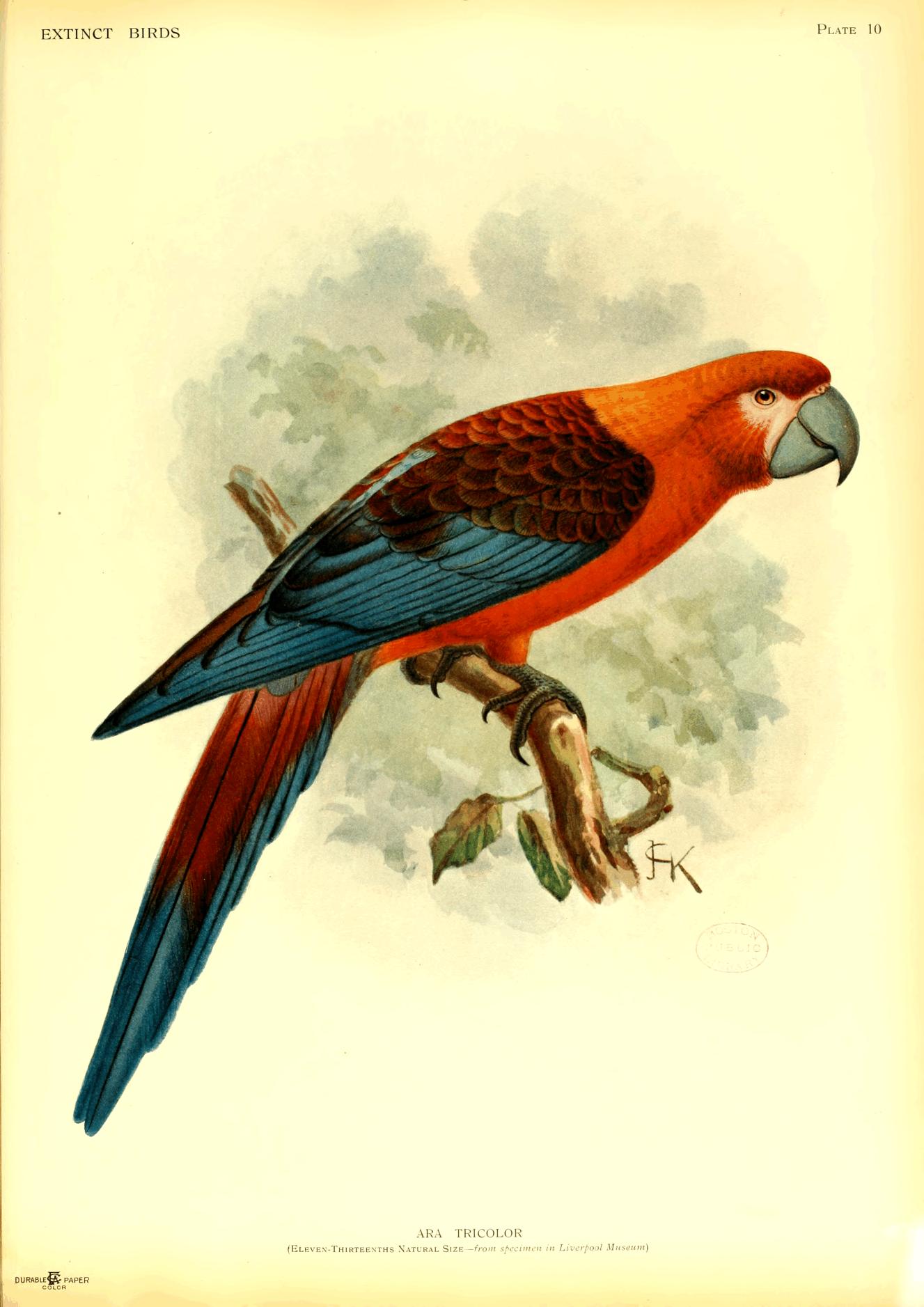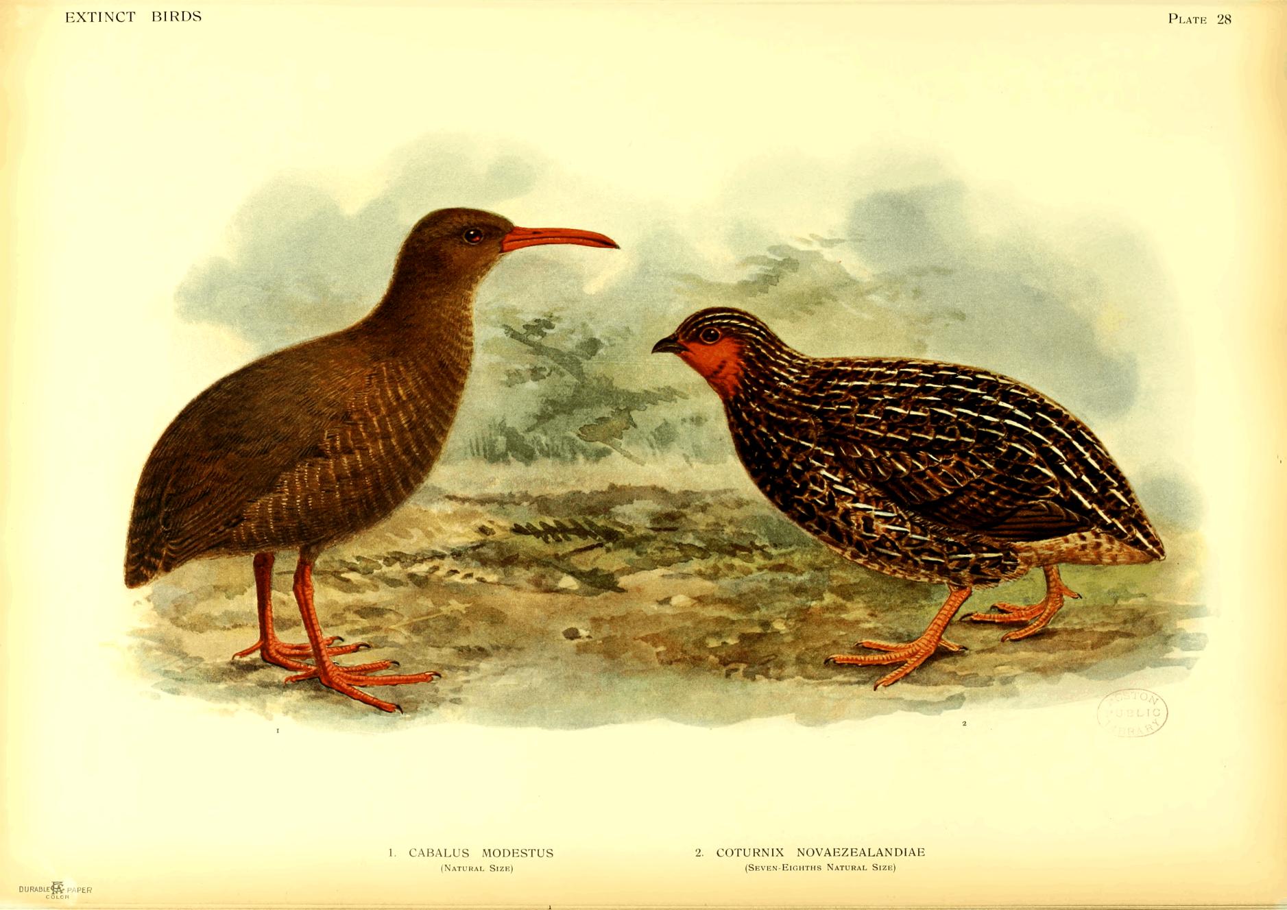 On the whole, this book is confined to species actually known to be extinct, but a few are included of which a small number is still known to exist, because firstly there seems no doubt that they will vanish soon, and secondly, as in the case of Notornis, it was necessary to clear up certain misconceptions and contradictory statements. In the case of a few species believed to be quite extinct, it is possible that some individuals may still exist in little known parts of their range, while on the other hand it is more than likely that several of the species referred to in my lecture (Proc. Orn. Congress pp. 191-207, 1907) as threatened with destruction, have already ceased to live. This may also be the case with some birds not alluded to at all.