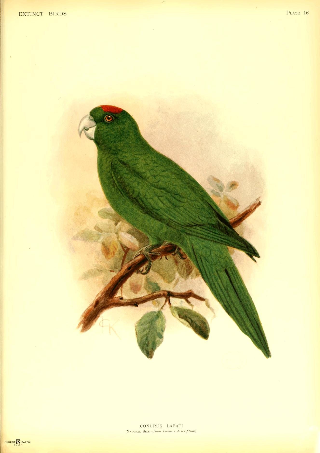 (In Vol. II, chapter VIII, the different species of Parrots are described, and it is stated that each island had three kinds, viz., an "Aras," a "Perroquet" and a "Perrique," evidently meaning a Macaw, an Amazona and a Conurus.)