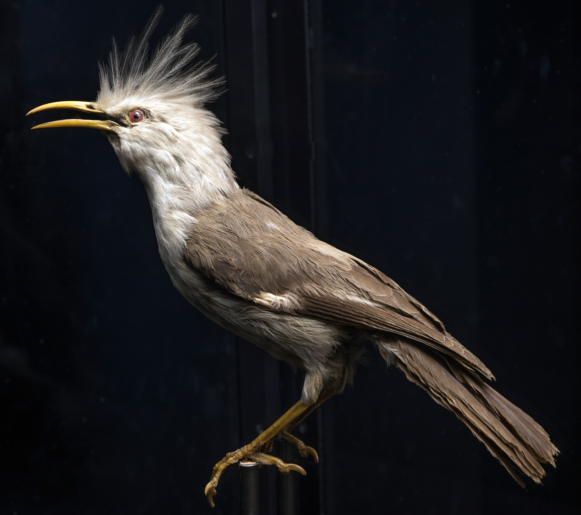 Specimen of the **hoopoe starling** (Fregilupus varius), also known as the Réunion starling or Bourbon crested starling, in Musée Cantonal de Zoologie, Lausanne wikimedia ![]()