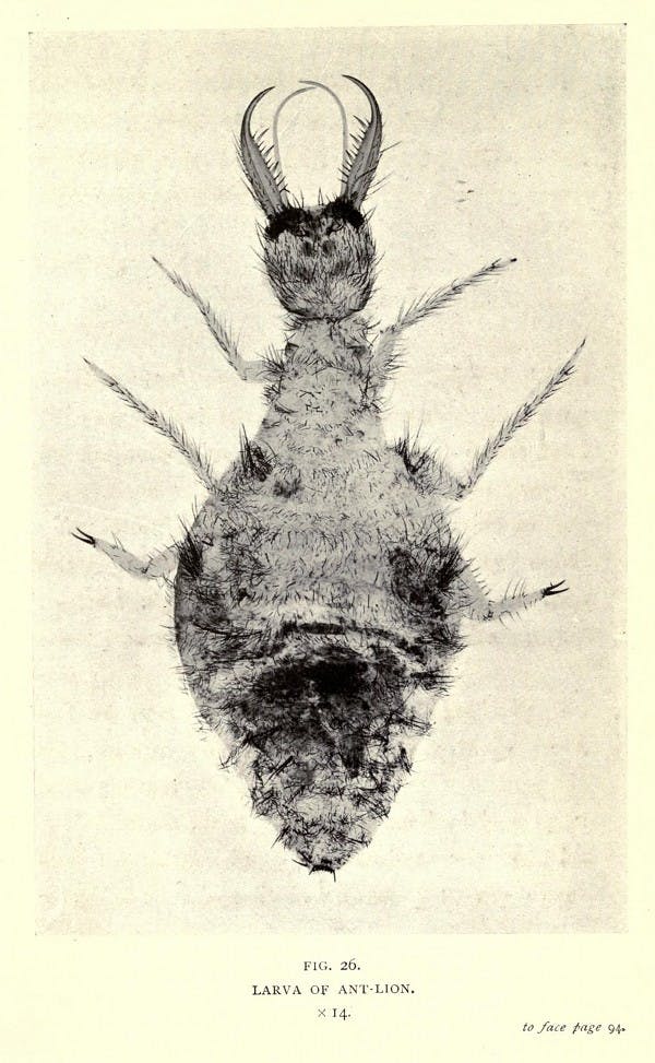 Figure 26. Larva of Antlion (x14) from Nature through Microscope & Camera - publicdomainreview.org ![]()